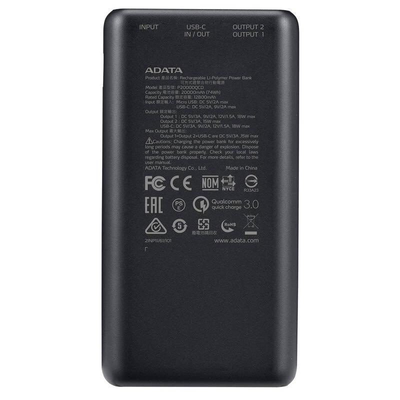 ADATA P20000QCD (AP20000QCD-DGT-CBK), 20 000 mAh, čierna