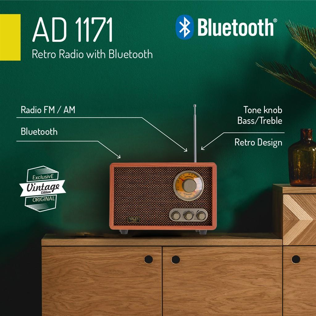 Počúvanie hudby je jedným z najkrajších spôsobov, ako spríjemniť čas strávený doma. Obľúbené piesne zlepšujú našu náladu a upokojujú nervy po niekoľkých prvých tónoch. Výber rozhlasového prijímača je dnes náročná úloha, pretože na trhu je veľa modelov vybavených rôznymi vymoženosťami, vďaka ktorým je počúvanie hudby profesionálnym koníčkom. Dnes odporúčame retro rádio s Bluetooth ADLER AD 1171, ktoré uspokojí najnáročnejších hudobných nadšencov, ale aj milovníkov interiérových dekorácií.