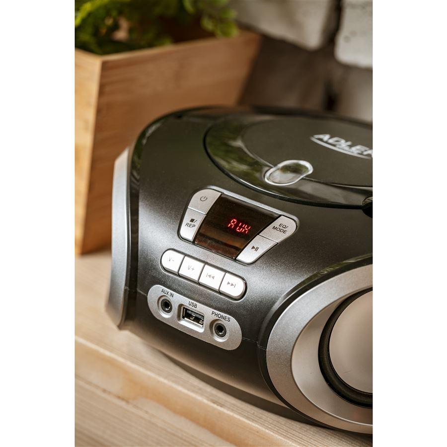 Kombinácia viacerých funkcií je nepochybnou výhodou AD1181. FM rádio vám umožňuje počúvať vaše obľúbené rozhlasové stanice a byť informovaný o novinkách z domova a zo sveta. Pamäť až 20 rozhlasových staníc vám umožňuje nastaviť svoje obľúbené stanice a rýchlo medzi nimi prepínať bez toho, aby ste ich museli nastavovať zakaždým, keď chcete stanicu zmeniť. AD1181 tiež umožňuje prehrávanie súborov MP3 cez USB. Vďaka tejto modernej funkcii môžete počúvať svoju obľúbenú hudbu a albumy svojho milovaného umelca bez toho, aby ste so sebou na dovolenkách museli nosiť početné CD disky. Ak si však vážite zvuk tradičného CD, máte tiež možnosť prehrať ho. Slúchadlový výstup vám umožní počúvať hudbu bez toho, aby ste rušili členov rodiny. A vstup AUX vám umožní pripojiť ďalšie zdroje hudby, napríklad smartphone alebo tablet.