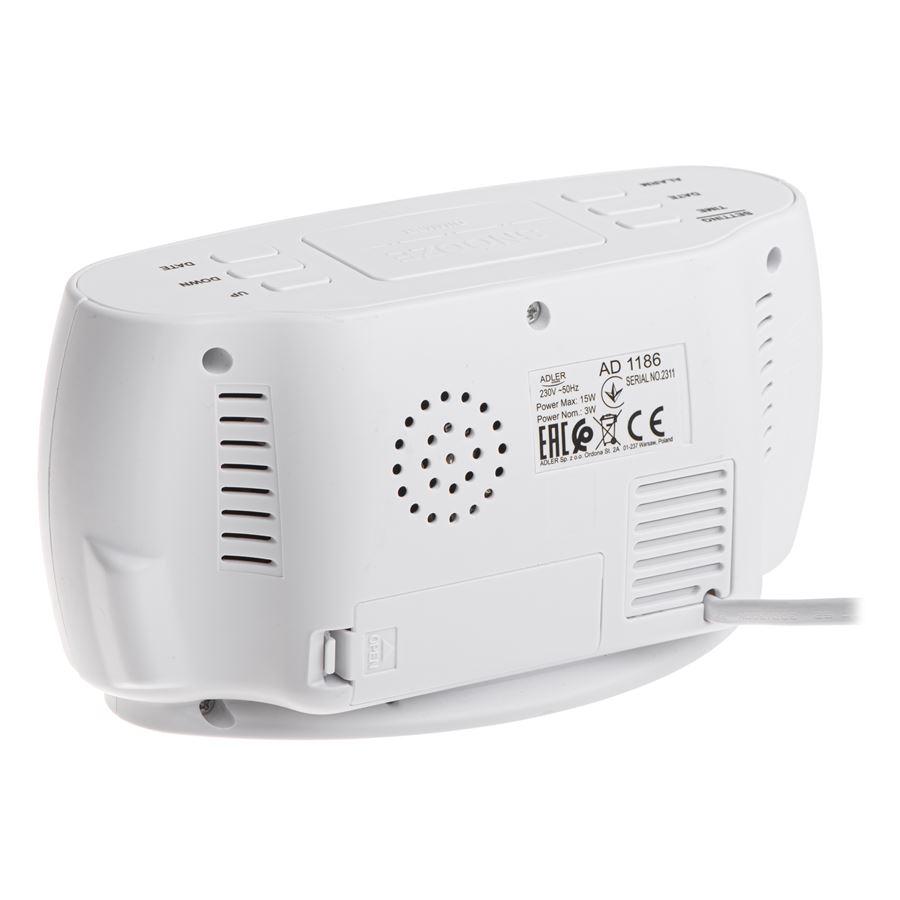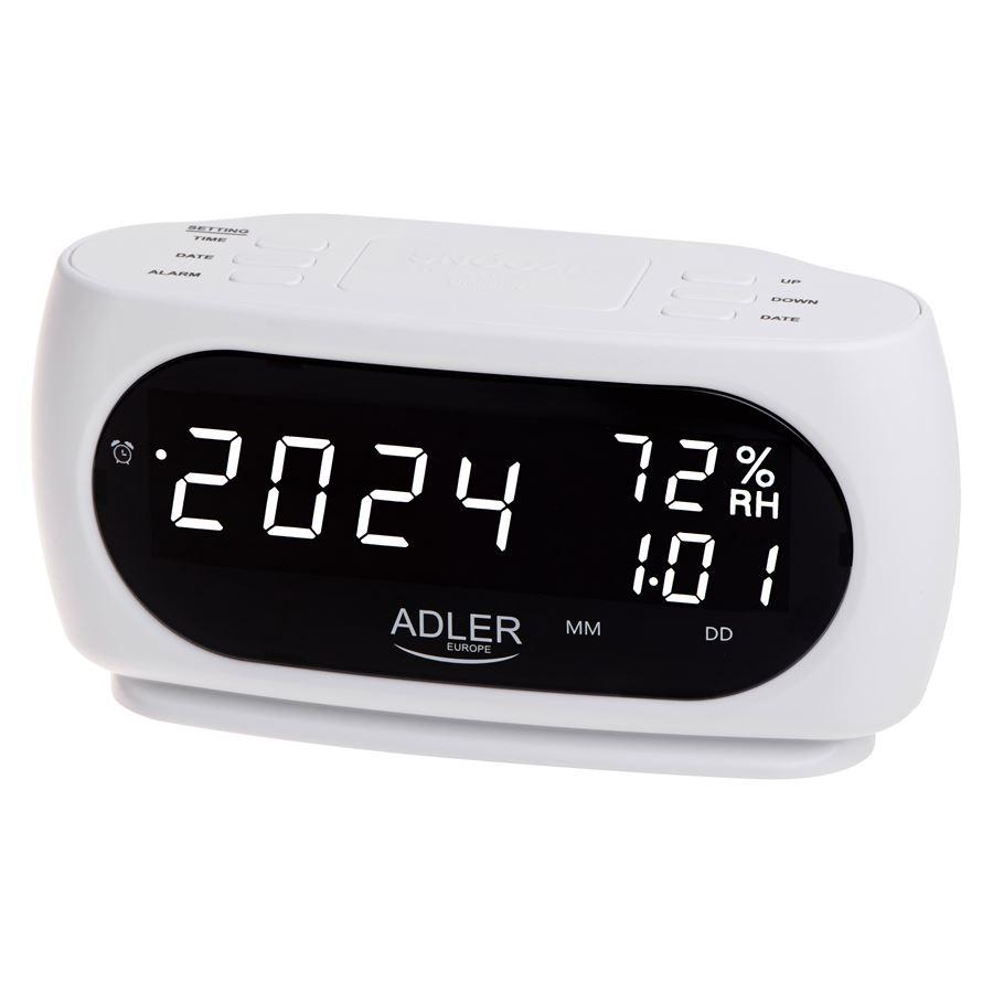Digitálny budík s teplomerom Adler AD1186 je malý, ale estetický a veľmi efektný budík. Zobrazovaný čas je výborne viditeľný vďaka LED displeju a veľkým číslam. Budík je napájaný zo siete ale má zabudovaný aj batériový záložný zdroj. AD1186 tiež ukazuje teplotu a vlhkosť v miestnosti. Veľkou výhodou je čitateľný LED displej, z ktorého ľahko odčítate čas za všetkých svetelných podmienok.