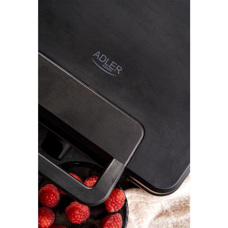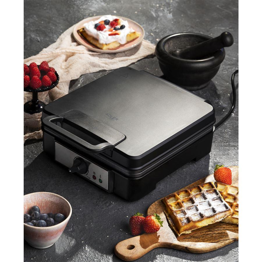 Elegantný vaflovač Adler AD3049 s vysokým výkonom 1800 W s reguláciou teploty. Ideálne na prípravu chrumkavých vaflí. Pečie 4 vafle súčasne. Je vybavený vyhrievacími doskami pokrytými antiadhéznou vrstvou, ktorá uľahčuje čistenie. Vysoký výkon zariadenia zaručuje rýchle zahriatie. Hľadáte prístroj, ktorý vám umožní pripraviť dokonale chrumkavé vafle za pár minút? Vaflovač Adler AD3049 určite splní požiadavky aj toho najväčšieho fanúšika sladkostí!