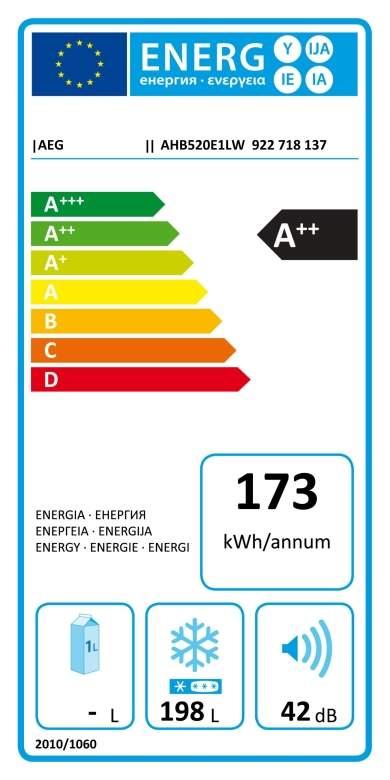 - Ročná spotreba energie (kWh): 173