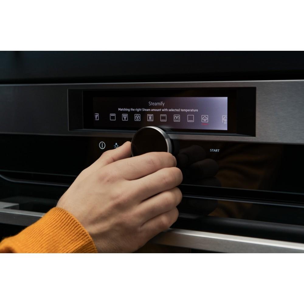 - Funkcie rúry: Gratinované jedlá, Dolný ohrev, Pečenie chleba, Tradičné pečenie, Rozmrazovanie, Kysnutie cesta, Sušenie, Mrazené pokrmy, Parné pečenie, Gril, Vysoká vlhkosť, Nízka vlhkosť, Udržiavanie teploty, Vlhký horúci vzduch, Pečenie pizze, Ohrev tanierov, Zaváranie, Pomalé pečenie, Parná regenerácia, Steamify, Teplovzdušné pečenie, Turbo gril