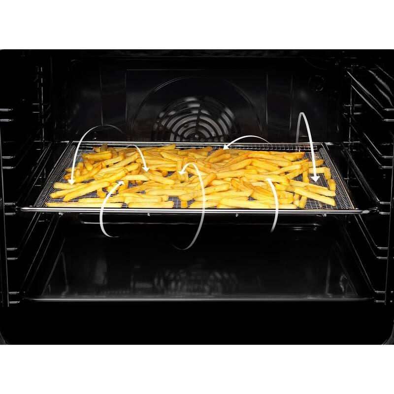 V rúre AirFry v kombinácii so špeciálnym perforovaným plechom dosiahnete chuť a textúru vyprážaných jedál bez použitia oleja. Horúci vzduch pôsobí na pokrm zo všetkých strán, aby bol chrumkavý a chutný. Ideálne na zdravšiu prípravu hranolčekov, krokiet, zeleniny alebo kuracích krídielok.
