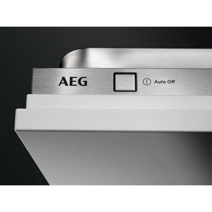 - Vlastnosti horného koša: 2 sklopné držiaky, 2 sklopné drôtené úchyty na poháre, 2 mäkké gumové špičky , sklopné držiaky na poháre, plastová rukoväť AEG