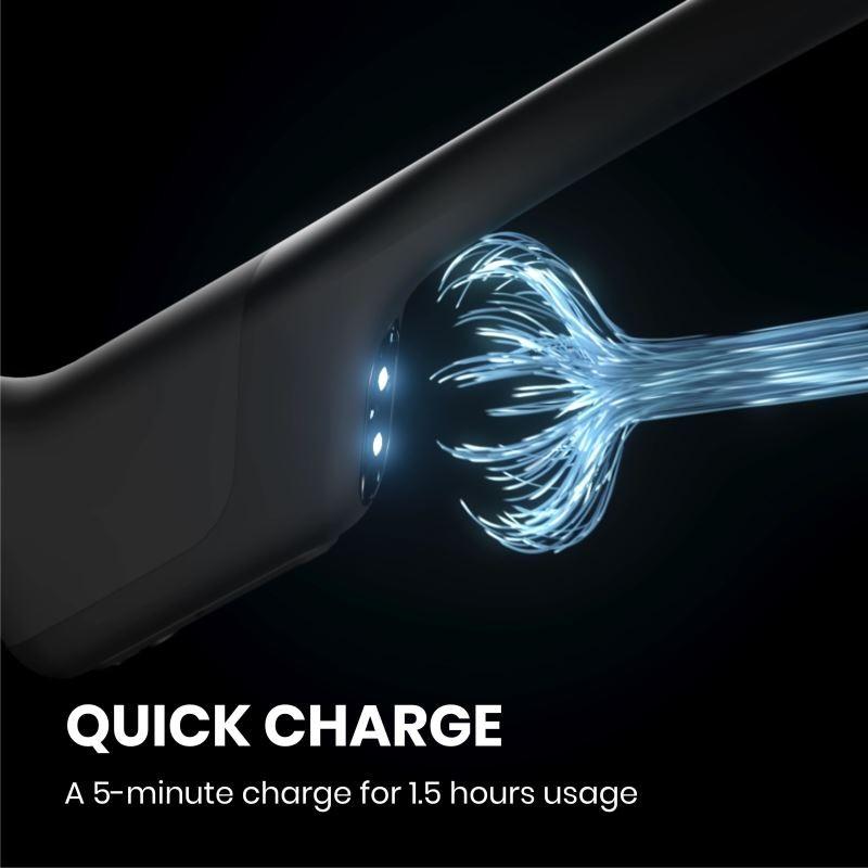 Funkcia OpenRun Pro Quick Charge ponúka rýchle nabíjanie, kedy počas iba 5 minút získate až 1,5 hodiny prehrávania.