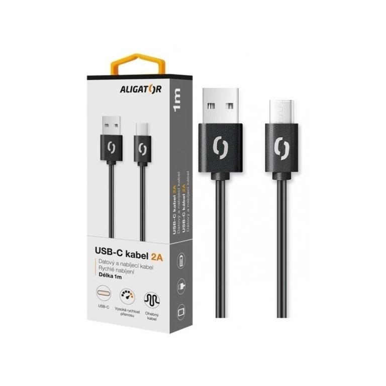 Dátový a nabíjací usb-c kábel, Dĺžka: 1m, Farba: čierna, Možnosť rýchleho nabíjania 2A