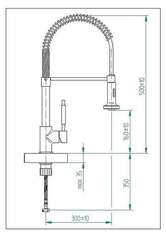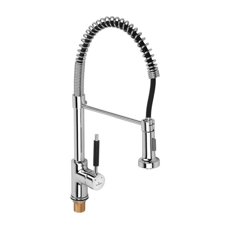 Kuchynská vodovodná batéria, tlaková, páková, zmiešavacia, s opleteným ramenom, chrómová, s mobilným ramenom