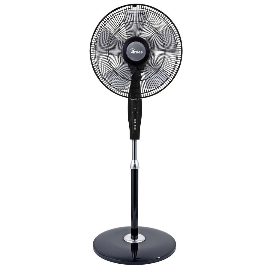 Stojanový ventilátor v luxusnom čiernom prevedení so striebornými detailmi je vybavený trojrýchlostným motorom s piatimi lupeňmi polopriehľadnou vysokorýchlostnou vrtuľou. Vďaka tomu ventilátor dokáže aj na najnižšiu rýchlosť účinne rozháňať ťažký vzduch.