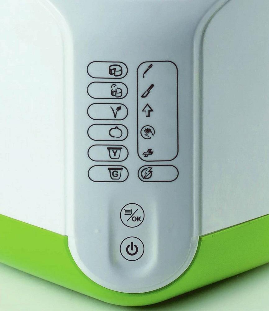 Ovládanie výrobníka syra B-cheese je navrhnuté tak, aby poskytovalo maximálne pohodlie a efektivitu pri práci s prístrojom. Dotykový panel so 6 svetelnými indikátormi a zrozumiteľnými piktogramami vás krok po kroku prevedie celým procesom výroby syra od pridania prvých ingrediencií až po výsledný produkt. Od vášho obľúbeného syra vás teraz delí doslova pár klikov. Okrem toho výrobník syra B-cheese nebude nikdy iba ďalším spotrebičom zaberajúcim miesto vo vašej kuchyni. Jeho dizajnový tvar rýchlo zapadne do vašej kuchyne a vďaka stohovateľným košom sa zmestí aj do menších úložných priestorov.