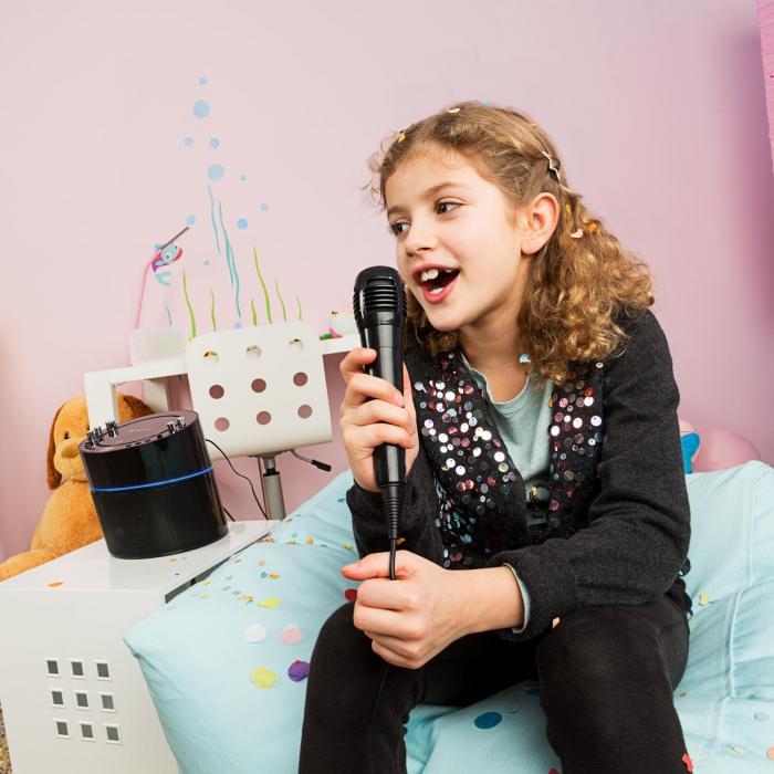 - Okrem dodávaného speváckeho mikrofónu je poskytnutý ďalší vstup pre druhý voliteľne dostupný mikrofón. Takže ani romantickému duetu nič nestojí v ceste.