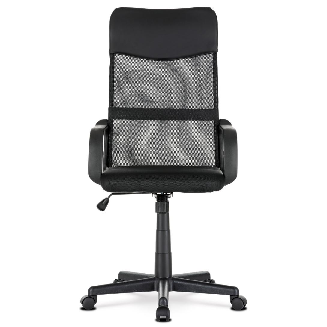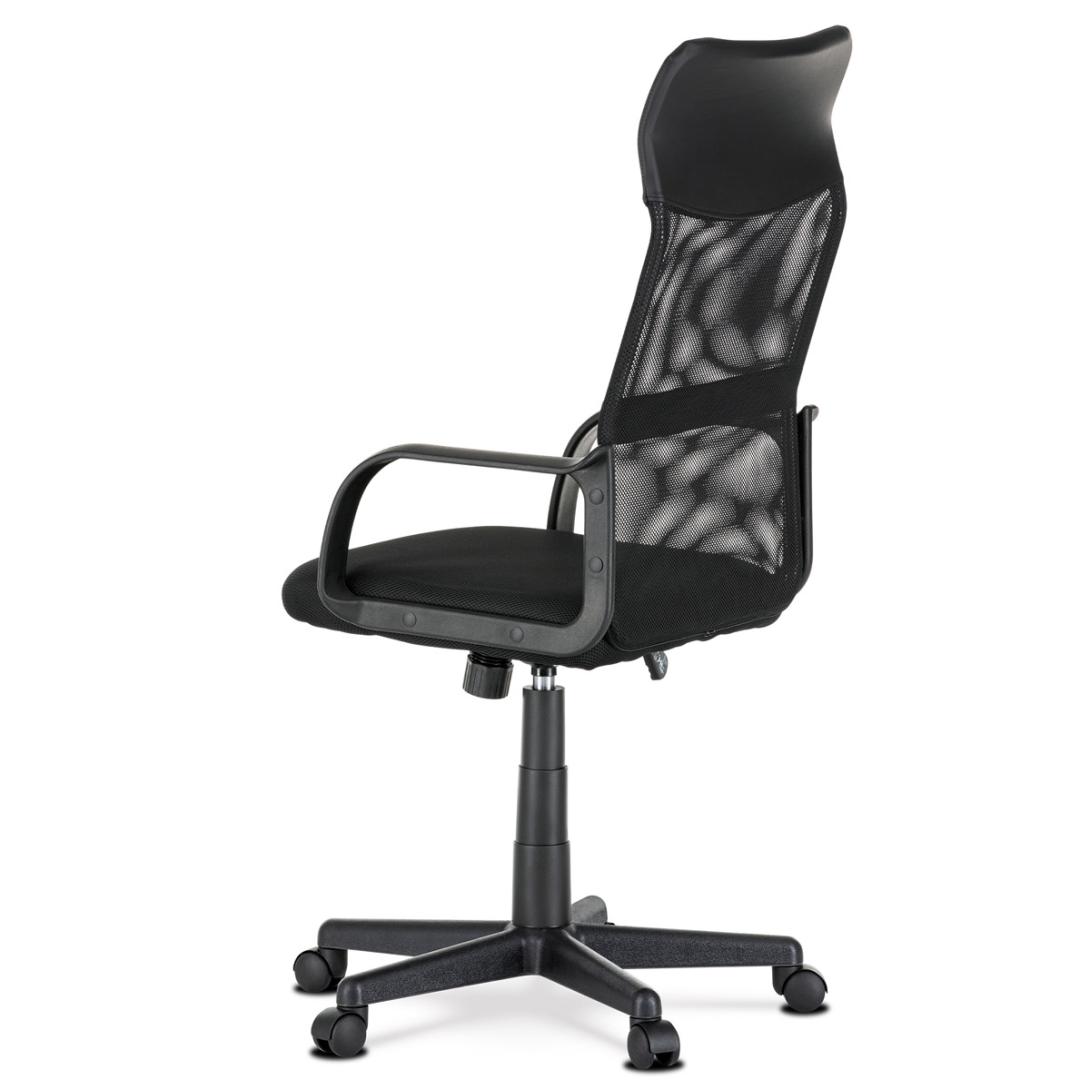 Vysoké rúrkové operadlo s bedrovou opierkou je potiahnuté čiernou sieťovinou MESH av hornej časti ako podhlavník slúži veľmi praktický poťah z čiernej ekokože. Použité materiály na sedáku aj chrbtovej časti operadla zaručujú dokonalú priedušnosť. Príjemný polstrovaný sedák je potiahnutý čiernou látkou MESH.