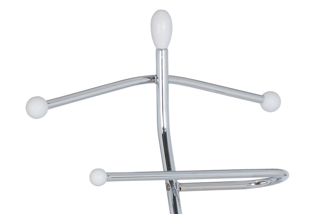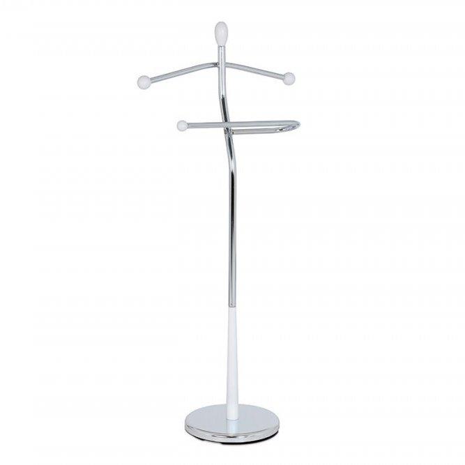 Praktický minimalistický nemý sluha v sebe kombinuje prvky z masívneho kaučukovníkového dreva s kovovými nosnými dielmi v chrómovanej povrchovej úprave. Tento model je ladený seversky, v bielom matnom laku. Výška 118 cm Vám umožní zavesenie oblečenia aj doplnkov úplne bez pokrčenia. Nosnosť stojana je až 5 kg rovnomerne rozprestretej záťaže, hmotnosť 5 kg. Konštrukcia je zakončená kovovou chrómovanou podestou so záťažou v čiernom plastovom puzdre. Stojan je jednoducho prenositeľný a je možné ho umiestniť podľa momentálnej potreby aj nálady. Štýlom a jednoduchosťou sa hodí do akéhokoľvek interiéru. Využitie je nepreberné, záleží len na Vás.