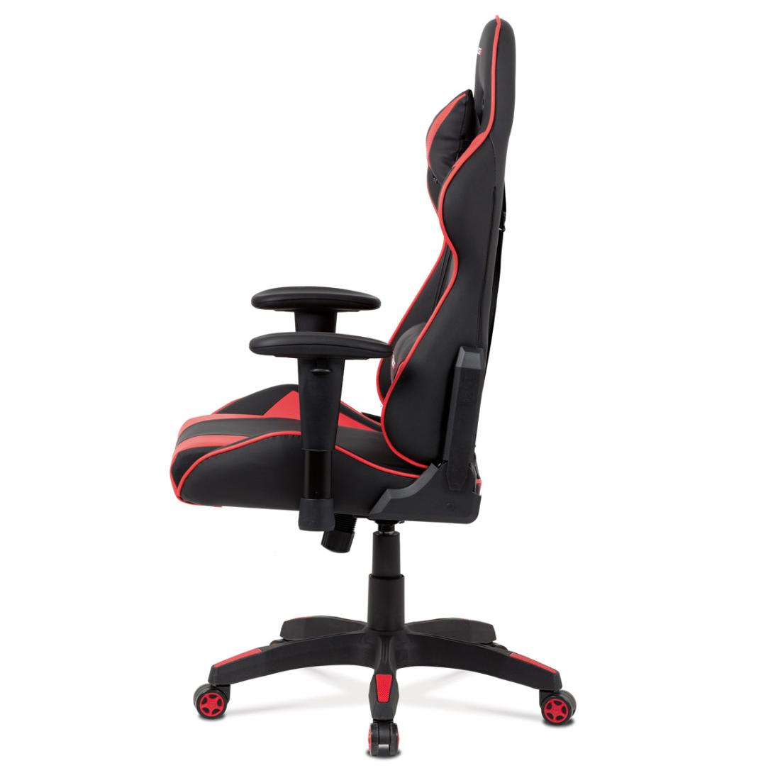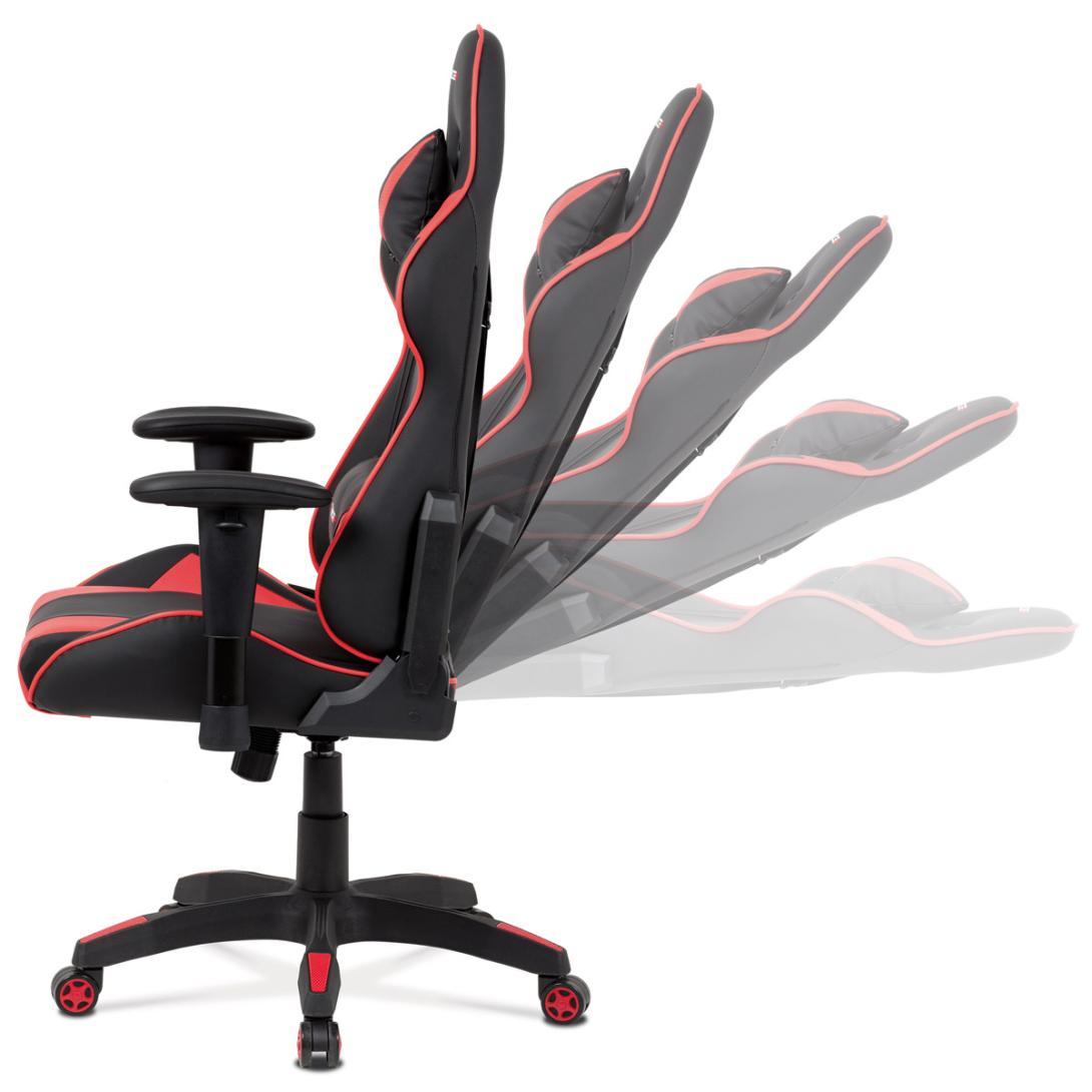 Kancelárske stolička v prevedení čierna ekokoža s červenými detailmi v dekorom "KARBON"