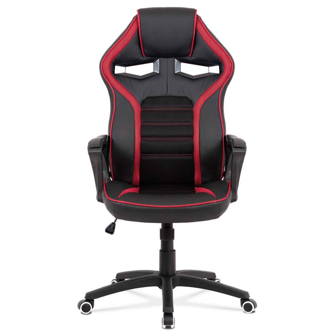 KANCELÁRSKE KRESLO, LÁTKA MESH A KOŽENKA, ČIERNA / ČERVENÁ