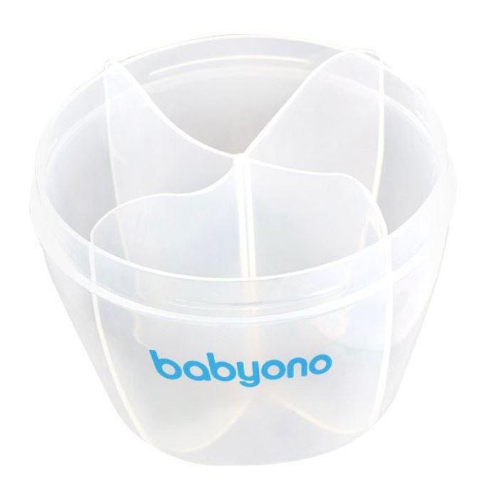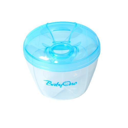 Nádoba na sušené mlieko, Praktický zásobník na sušené mlieko, využiteľný pri cestovaní a vždy, keď sa s dieťatkom nachádzate mimo domu. Zásobník je 4-komorový. Každá komora má obsah 8 odmeriek prášku.