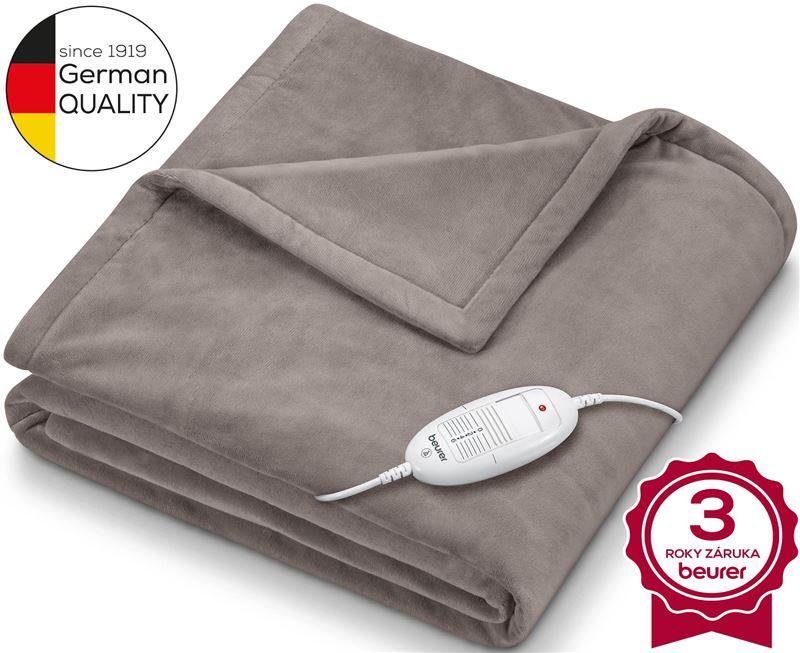 Elektrická deka, 6 nastavení teploty, 100 wattov, Trojstupňová bezpečnosť, Extra mäkký povrch, priedušný, Bezpečnostný systém Beurer (BSS), Automatické vypnutie po cca. 3 hodiny, Patentovaná elektronická regulácia teploty