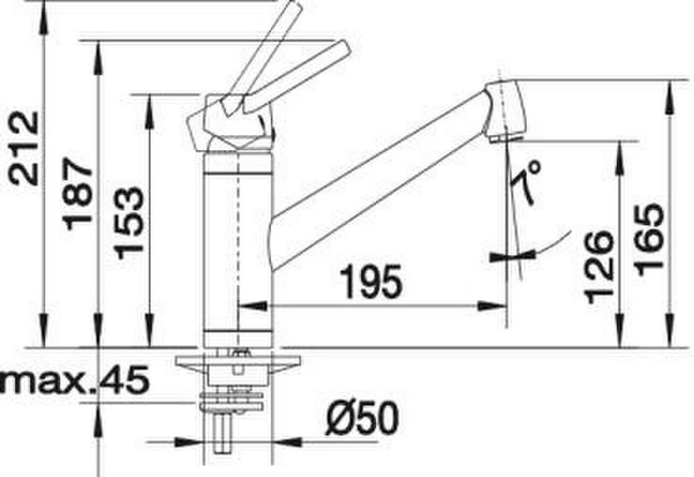 Kuchynská batéria, Maximálna výška: 212 mm, S keramickou kartušou
