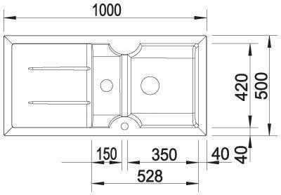 Kuchynský drez, Hĺbka prvej nádobky: 18,5 centimeter, Rozmery druhej nádobky (š x d): 150 x 420 mm.