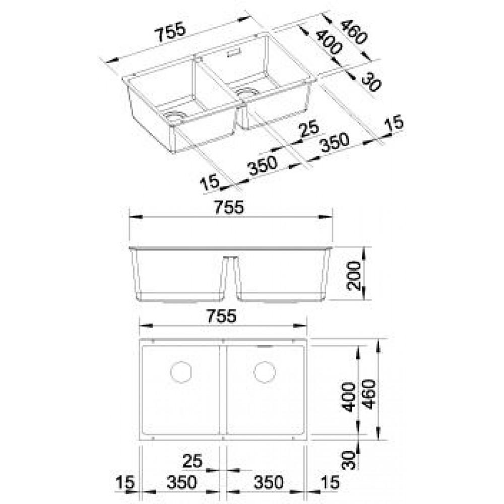 Kuchynský drez, Rozmery prvej nádobky (š x d): 350 x 400 mm, Hĺbka prvej nádobky: 20 centimeter.