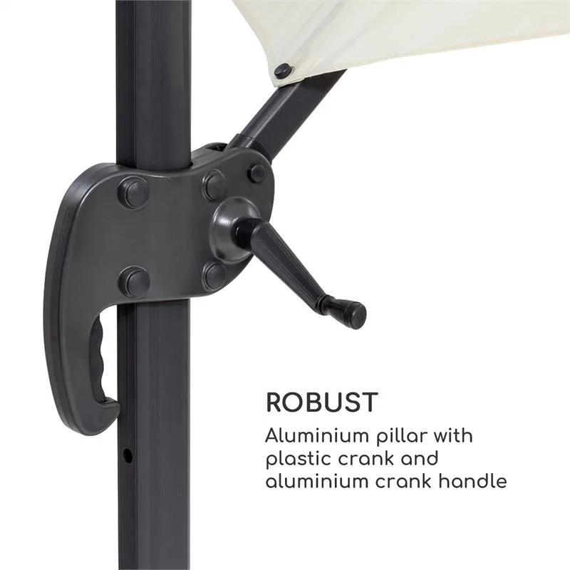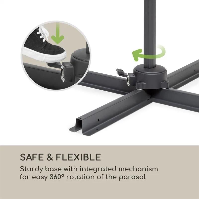 Dôkladná ochrana pred slnkom! Flexibilne použiteľný slnečník Belo Horizonte od spoločnosti blumfeldt zaujme otočnou funkciou o 360°, veľkou strechou proti slnku s UV ochranou 30+ a robustnou hliníkovou tyčou.
