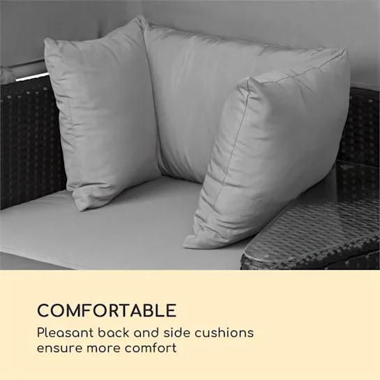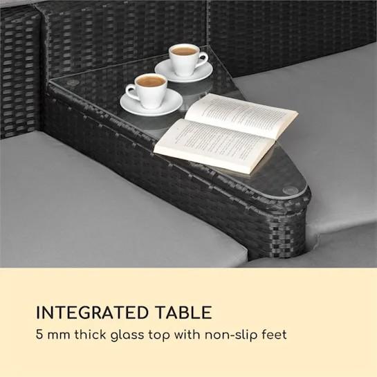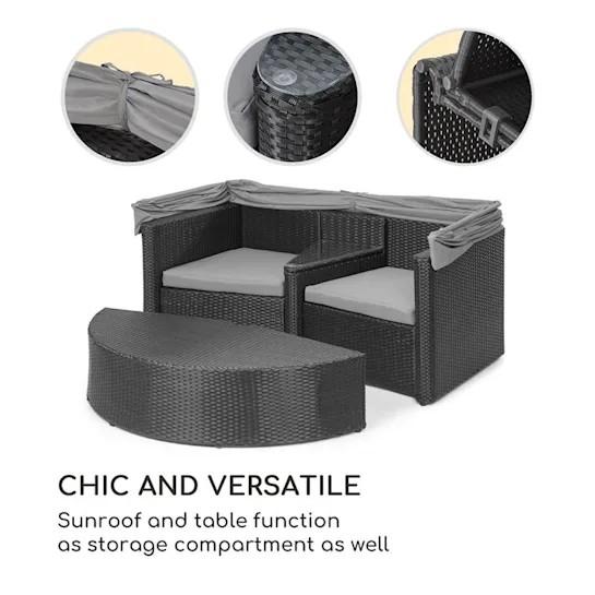 - Vysoký komfort pri sedení: 2-miestna outdoorová pohovka z ocele a polyratanu so strieškou a integrovaným stolíkom