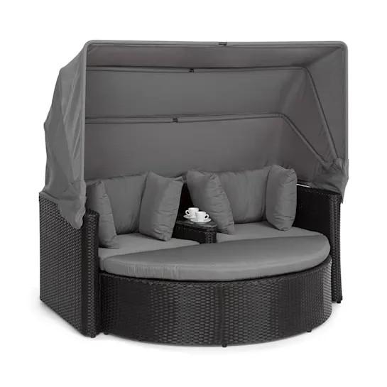 Heartland, dvojmiestna pohovka so stolíkom, stolček, strieška proti slnku, sivá