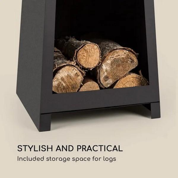 - pekný a praktický: vrátane úložného priestoru pre drevené polená