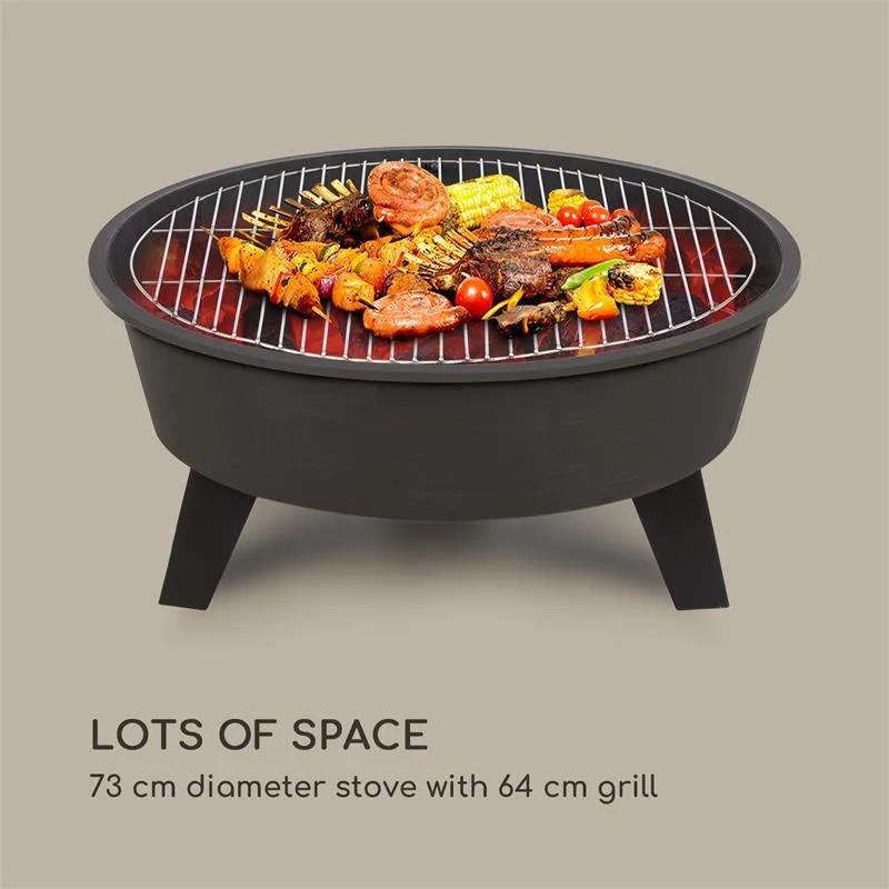 - Dvojnásobne praktické zariadenie: nádoba na oheň z práškovo lakovanej ocele s grilovacím roštom z ušľachtilej ocele