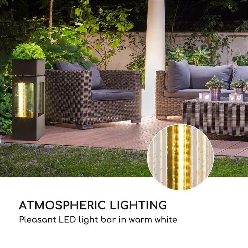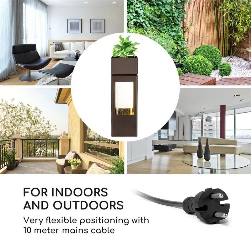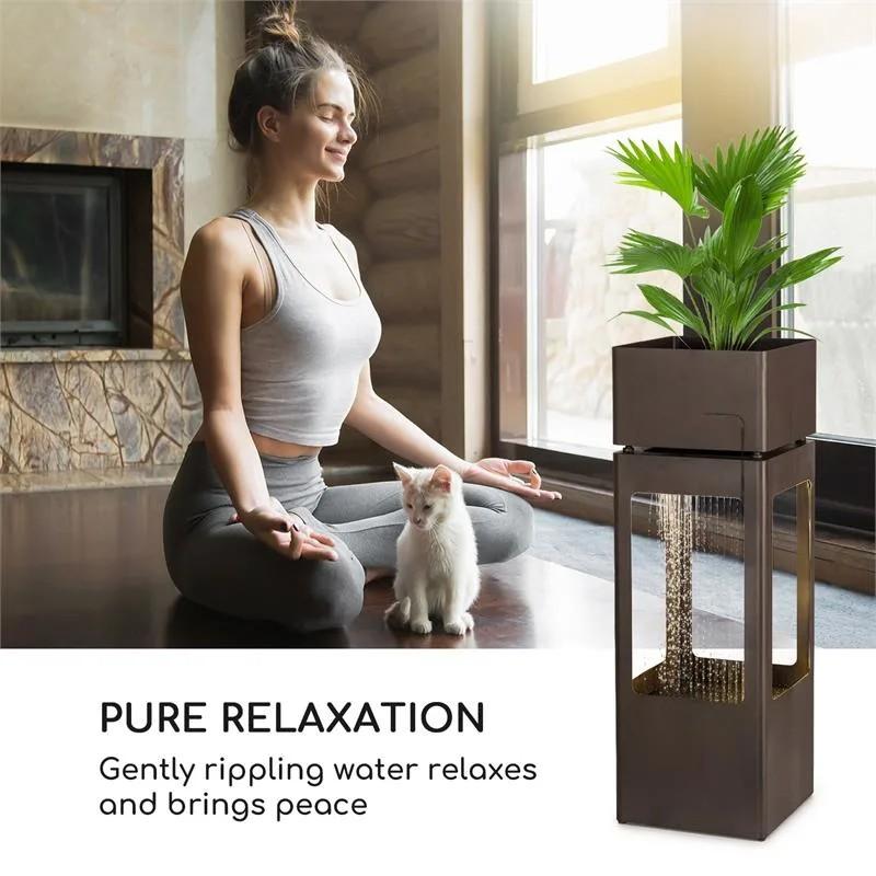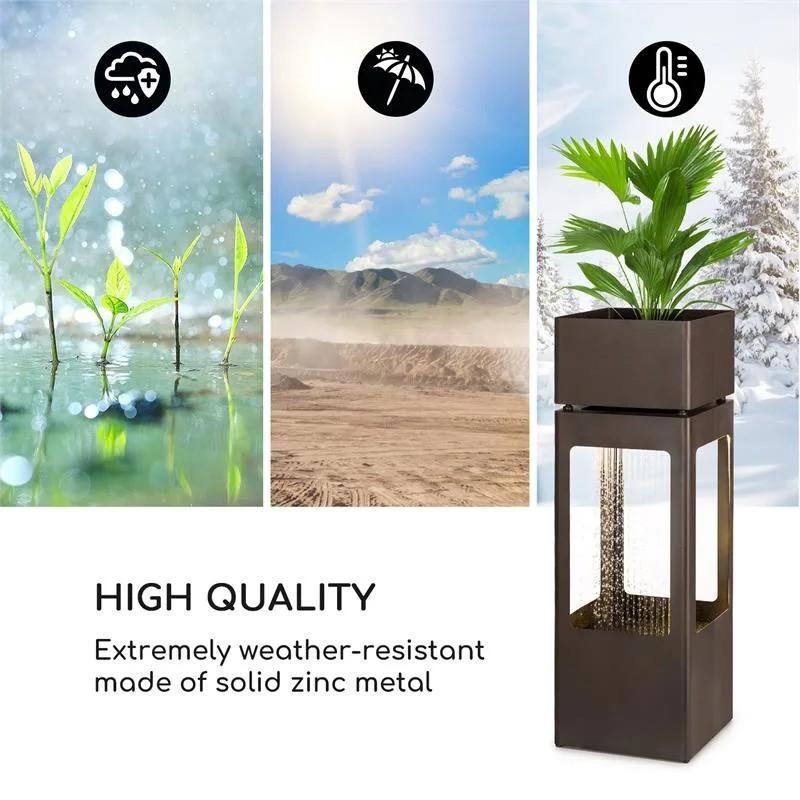 Voda osvetlená 50 cm dlhou LED svetelnou lištou zurčí stekajúc v neustálom prúde a postará sa o meditatívne uvoľnenie. Fontána Waterplant zhotovená z pozinkovaného kovu je pritom mimoriadne masívna a odolná. Aby sa vodná hra nikdy neunavila, pumpa s výkonom 16 W zabezpečí neustálu cirkuláciu vody. Vďaka extra dlhému sieťovému káblu s dĺžkou 10 m je možné záhradnú fontánu voľne umiestniť, všade si nájde perfektné miesto. Mimoriadny highlight je kvetináč pekného tvaru, ktorý do každej domácnosti prináša dodatočnú eleganciu.
