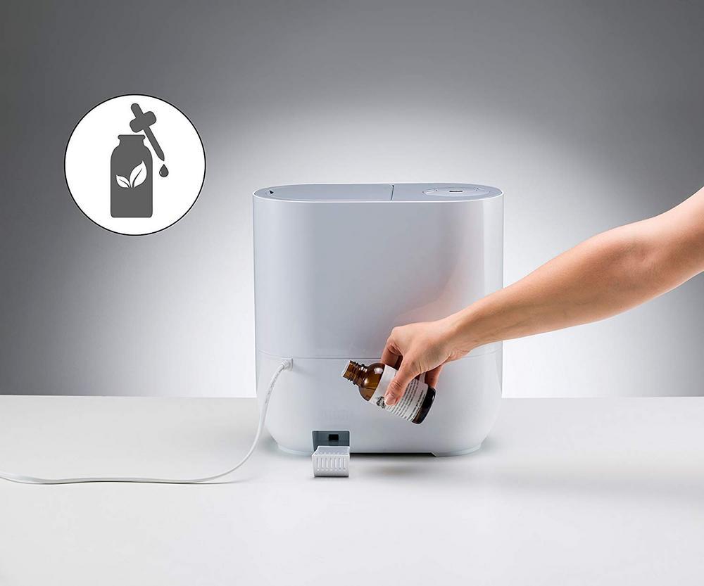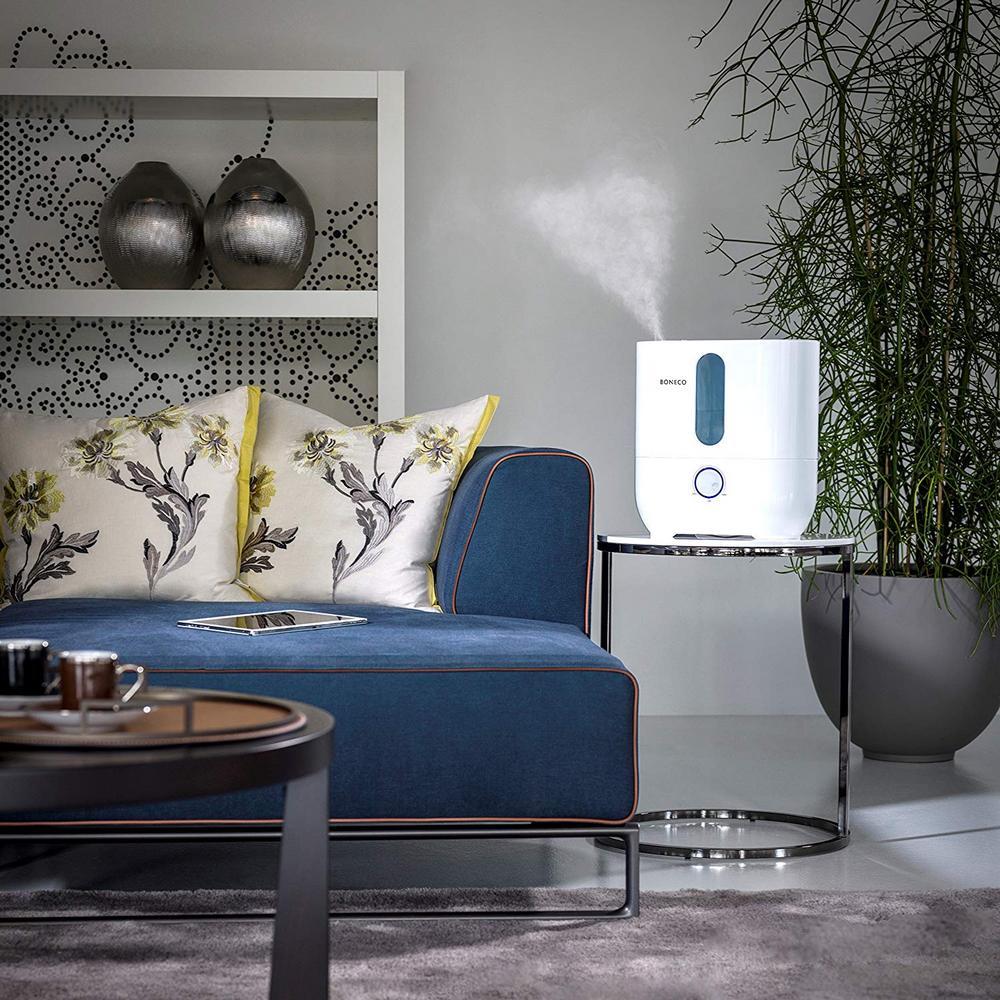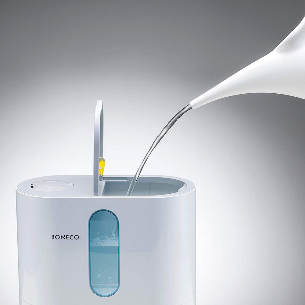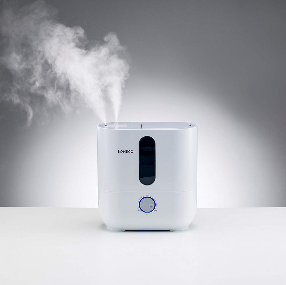 Zvlhčovač vzduchu Boneco U300 dôsledne bojuje proti suchému vzduchu. Je ideálnym pomocníkom pre každého, kto chce doma či v kancelárii čistý a zároveň ideálne vlhký vzduch. Vzduch zvlhčuje studenou hmlou, ktorá môže byť rozptýlená do priestoru v 2 smeroch pomocou trysky s dvojitým prúdom. Prístroj má plynulé nastavenie úrovne výkonu. Aby ste sa cítili naozaj dokonalo, zvlhčovač umožňuje použitie vonných látok a éterických olejov. V elegantnom bielom prevedení sa pritom dokonale hodí do každého moderného interiéru. Dizajn bol ocenený v medzinárodnej súťaži "RedDot".