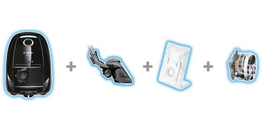 - QuatroPower System: technológia vysokého výkonu od značky Bosch, ktorá zabezpečí vynikajúce výsledky vysávanie s nízkou spotrebou energie.
