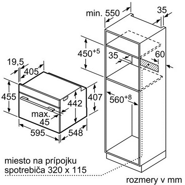 - Rozmery spotrebica (V x Š x H): 455 mm x 594 mm x 548 mm