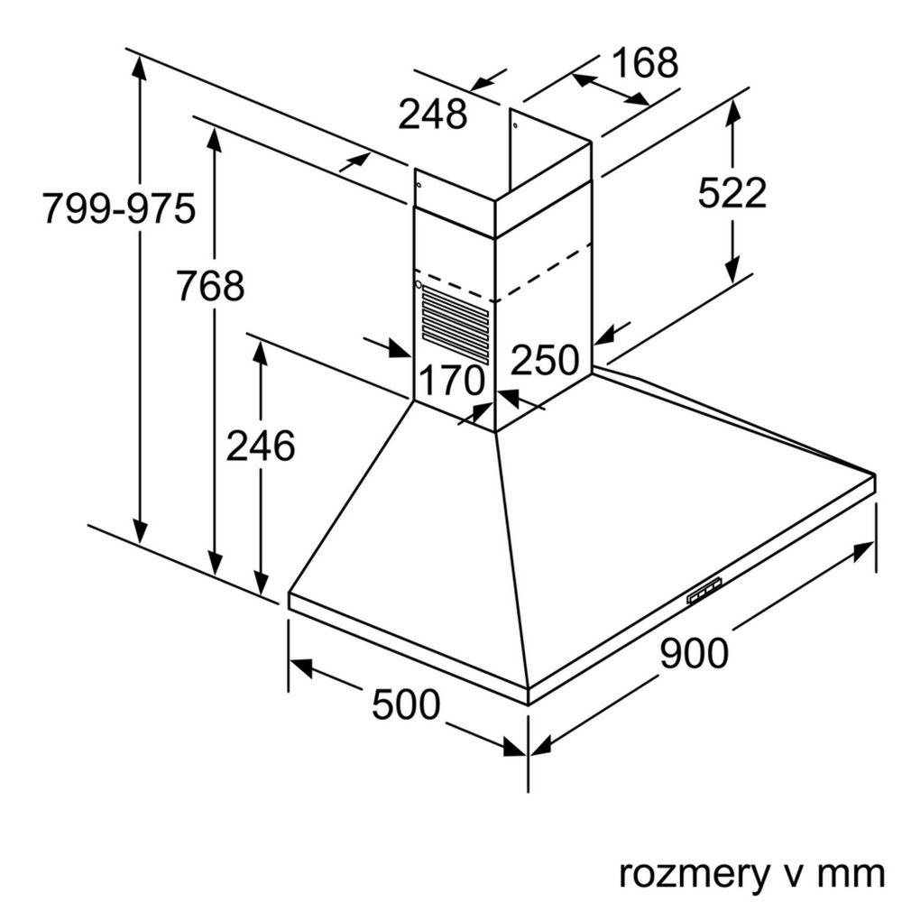 - rozmery pri recirkulácii (VxŠxH): 799-975 x 900 x 500 mm