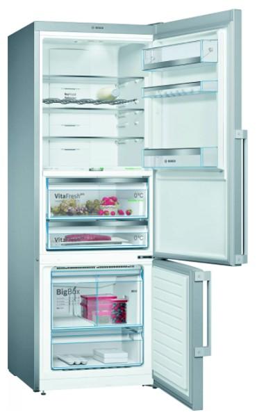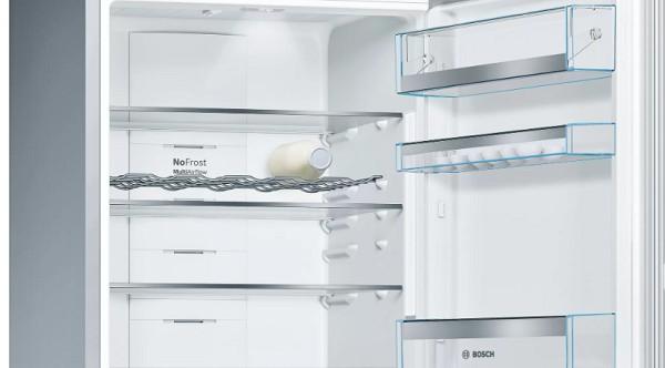 Kombinovaná chladnička Bosch v nerezovom prevedení s integrovaným vertikálnym madlom má výšku 193 cm. Do chladničky s objemom až 375 litrov sa zmestí nákup pre celú vašu rodinu. Vo vnútri chladničky nájdete až 4 EasyAccess police, držiak na fľaše a dva VitaFresh boxy s reguláciou vlhkosti ideálny pre uskladnenie ovocia a zeleniny. Vo dverách chladničky nájdete ešte ďalšie 3 poličky, ideálne na odloženie vajíčok, masla alebo fliaš.