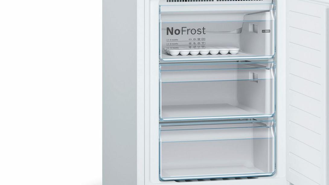 Manuálne odmrazovanie chladničky môže byť veľmi nepríjemné a časovo náročné. Vďaka novým chladničkám s funkciou NoFrost môžete túto úlohu jednoducho odstrániť z vášho zoznamu úloh. Na rozdiel od bežných chladničiek je vlhkosť vzduchu v chladničke NoFrost neustále zachytávaná v centrálnom výparníku, ktorý sa pravidelne a automaticky odmrazuje. Výsledná kondenzovaná voda sa jednoducho vyvedie von z chladničky, kde sa potom odparí. Týmto spôsobom funkcia NoFrost nielenže trvalo udržuje vašu chladničku bez ľadu, ale vás aj zbavuje potreby jej manuálneho odmrazovania.