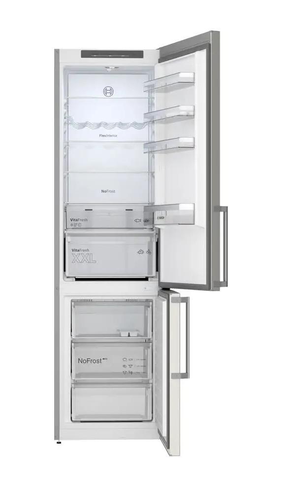 Chladnička, Celkový úžitkový objem 363 l, Spotreba el. energie 129 kWh/rok, Doba skladovania pri výpadku 18 h, Hlučnosť 33 dB