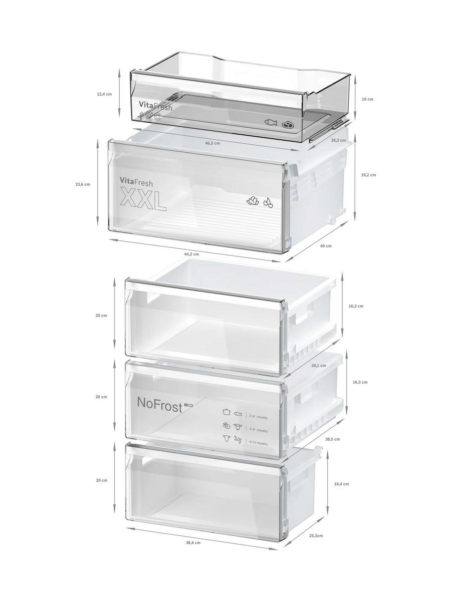 - VitaFresh XXL <0 °C>: udržuje potraviny dlhšie čerstvé v mimoriadne veľkých zásuvkách s reguláciou vlhkosti.