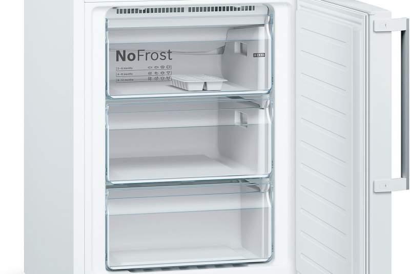 Kombinovaná chladnička Bosch KGN39VWEP v bielom m prevedení s vertikálnym madlom má výšku 203 cm. Inteligentná invertorová technológia zabezpečuje inteligentnú interakciu medzi senzomi, elektronikou a kompresorom. Senzory nepretržite monitorujú vo vnútri chladničky a jej okolí. Elektronický systém okamžite zaznamená zmeny a kompresor následne prispôsobuje svoj výkon k aktuálnej situácii. S technológiou NoFrost už odmrazovanie nebude nutné. Chladnička aj mraznička sa odrmazujú automaticky. Prednosťami chladničky sú: