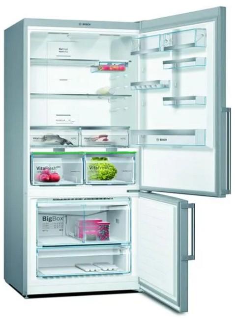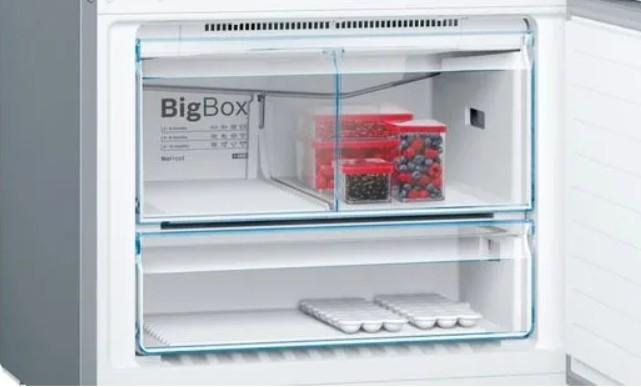 Chladiaca časť kombinovanej chladničky Bosch KGN86AIDP poskytne veľký úložný priestor s kapacitou 479 l. Disponuje 3 odkladacími plochami (z toho 2 poličky sú výškovo nastaviteľné), ktoré sú z bezpečného skla. Pod tým nájdete 2 zásuvky VitaFresh+ s reguláciou vlhkosti, ktoré sú ideálne na uloženie ovocia a zeleniny, a 2 zásuvky VitaFresh+ s reguláciou teploty na výsuve, vhodné na ryby a mäso. Ďalej je vybavená 6 priehradkami vo dverách, z toho dve sú na maslo.