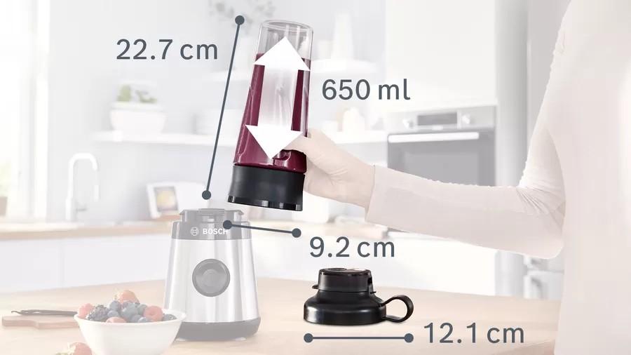 Kvalitné nerezové nože ProEdge sú ostré, pevné a odolné. Vyrábajú sa v nemeckom Solingene. Diely je možné umyť pod tečúcou vodou, alebo vložiť do umývačky riadu. Fľaša zaručí dlhodobú radosť z používania vďaka európskej výrobe a mnohoročnými skúsenosťami značky Bosch. Môžete sa spoľahnúť na vysokú kvalitu a perfektný výkon. Plasty sú bez BPA.