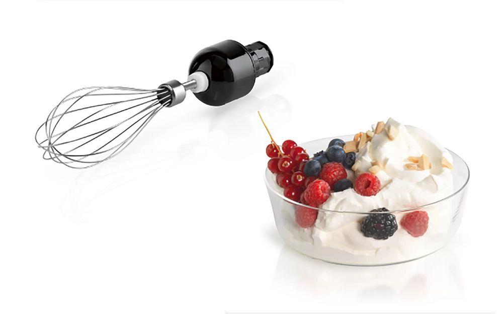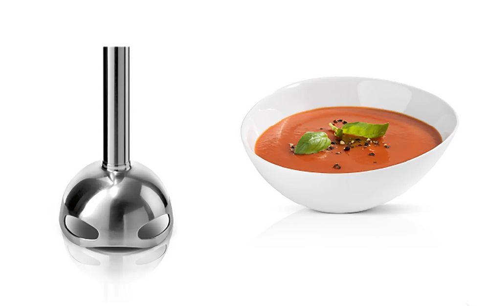 Štýlové mixovanie nebolo nikdy pohodlnejšie. Plášť z nehrdzavejúcej ocele je zárukou dlhotrvajúcej kvality. Vďaka štíhlemu, ergonomickému tvaru mäkčenej rukoväte sa mixér pohodlne a bezpečne drží.