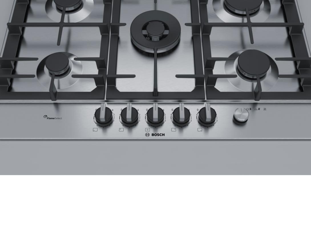 - Plynový varný panel z nehrdzavejúcej ocele s FlameSelect: dosiahnite perfektné výsledky varenia vďaka precízne definovanými stupňami výkonu.