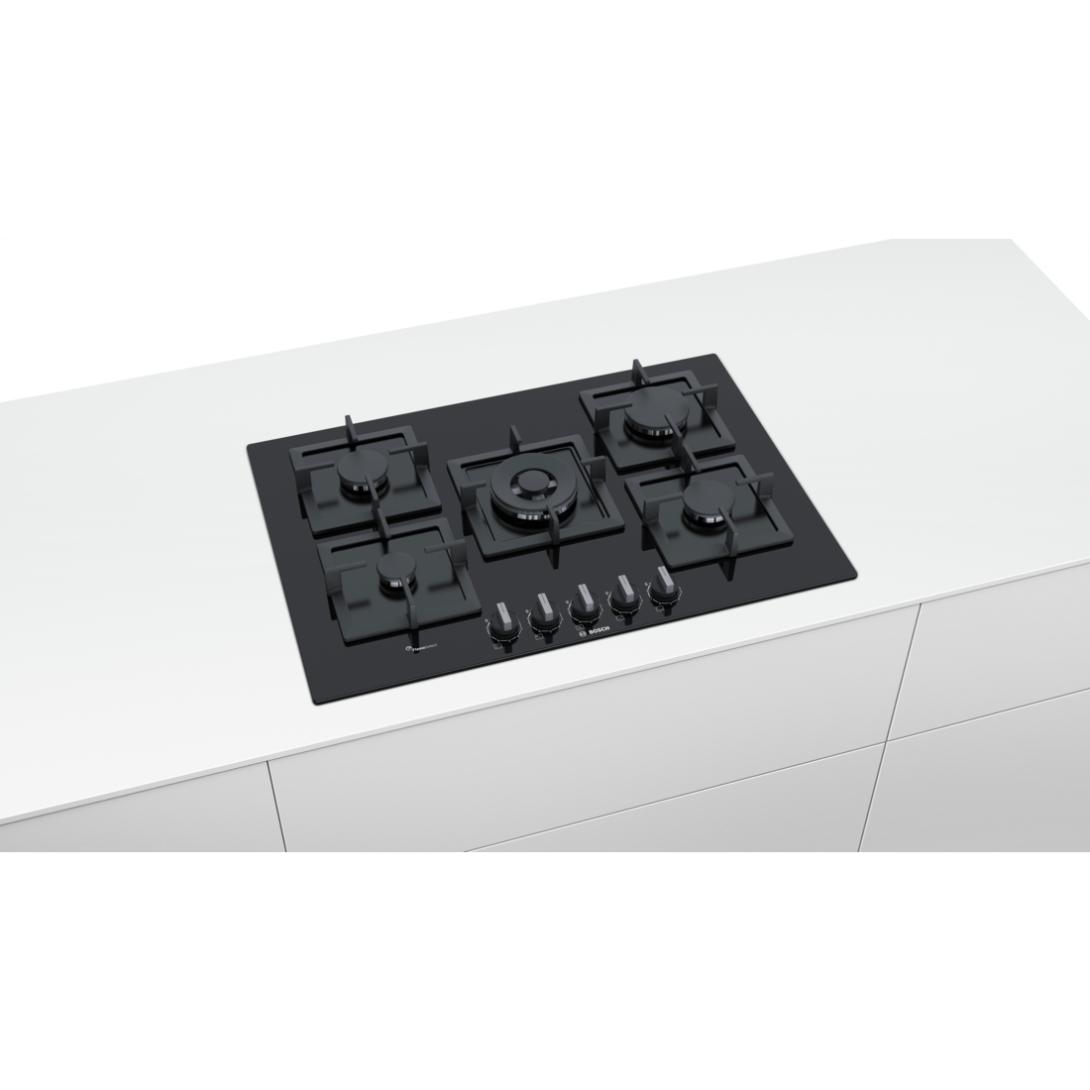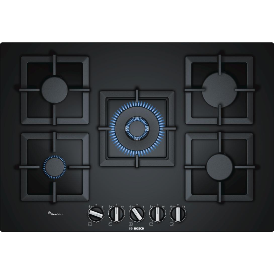 Plynový varný panel z tvrdeného skla s FlameSelect: pre dosiahnutie perfektných výsledkov varenia vďaka presne definovaným deviatim stupňom výkonu.