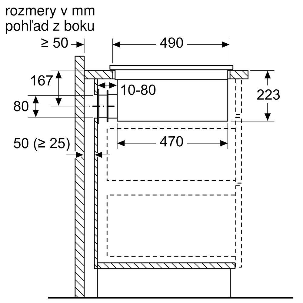 - - montážna sada pre prevádzku s cirkuláciou HEZ9VRUD0 vyžaduje vertikálny otvor min. 25 mm za zadnou stenou nábytku. Odporúčané pre ideálne výkon sú 50 mm.