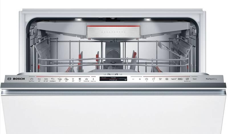 - Výpis programov Eco 50 °C, Auto 45-65 °C, Inteligentní, Intenzivní 70°C, Krátký 60 °C, Sklo 40 °C, Tichý 50 °C, Oblíbený