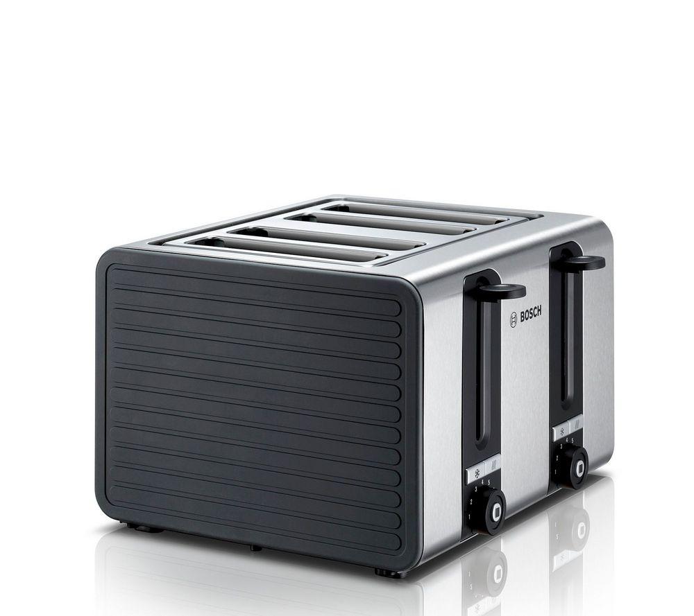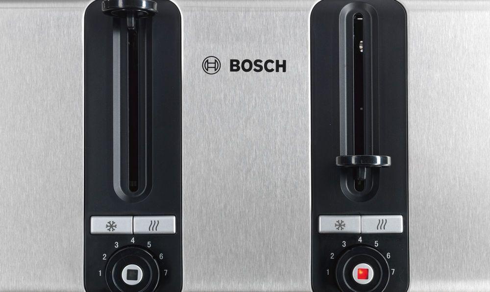 Hriankovač Bosch TAT7S45 s 4 toastovými slotmy je vybavený funkciou automatického centrovanie chleba, vďaka ktorému bude každý toast rovnomerne prepečený. Obe komory môžu byť nezávisle regulované. Integrované funkcie zahrievania a rozmrazovania umožňujú pripravovať zmrazené pečivo.
