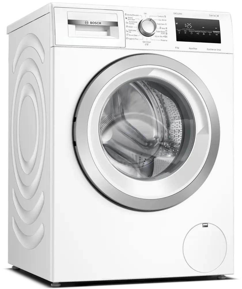 - Voľne stojaca vopred plnená práčka v bielom dizajne