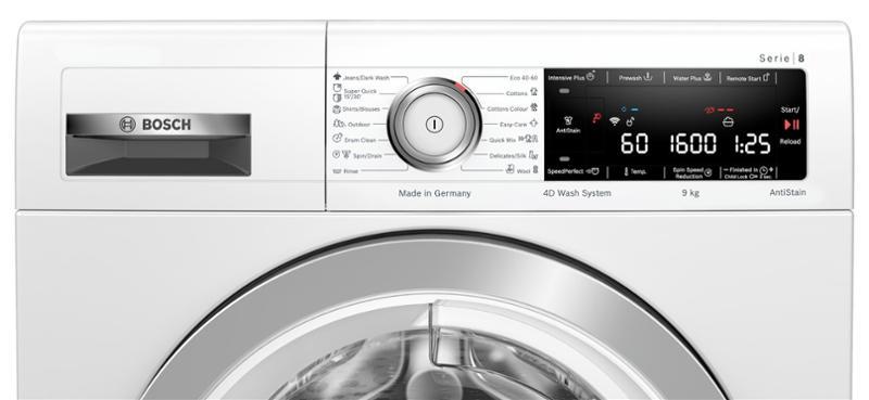 Kvalitu jemného prania vám zaručuje bubon, ktorý pojme až 9 kg bielizne. Práčka vám ponúka až 14 pracích programov a veľký dotykový LED displej, na ktorom si môžete skontrolovať čas, ktorý zostáva do dokončenia pracieho programu. O dokonalý výsledok prania sa postarajú inteligentné programy, ktoré automaticky nastavia parametre tak, aby bol zabezpečený ten najlepší možný výsledok prania. Isto oceníte funkciu odloženého štartu a detskú poistku. Pohon EcoSilence zariadi tichú a energeticky úspornú prevádzku práčky. Systém AntiStain sa postará o odstránenie štyroch najbežnejších typov škvŕn. Aplikácia Home Connect vám zaručí flexibilné ovládanie práčky na diaľku. Celý proces prania tak budete mať vždy plne pod kontrolou.