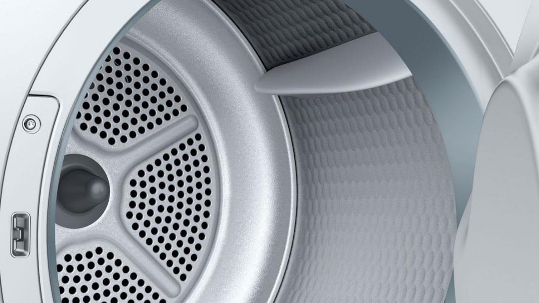 - systém šetrného sušenia SensitiveDrying: veľký nerezový bubon so špeciálnou štruktúrou a unášačmi s mäkkým povrchom pre jemnú starostlivosť o bielizeň